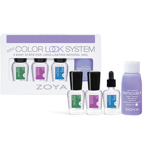 Lock in the perfect nail colour with the Zoya Mini Colour Lock System. This system creates a protective barrier around your polish, defending it against moisture, bubbling, and chipping.